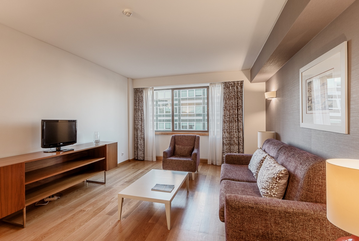 1-bedroom apartment, 56 sqm (gross floor area), furnished and equipped, near Avenida da Liberdade, in Lisbon. Apartment featuring quality finishes and comprising living room, bedroom, bathroom, entrance hall with kitchenette. In the Altis Suites building operated by Altis Hotel and benefiting from the respective infrastructures under preferential conditions, such as an indoor swimming pool and a gym. Apartment with air conditioning, double glazing, fire safety door, and solid wood flooring.Within a 2-minute walking distance from Avenida da Liberdade, one of the main avenues of the city, restaurants, hotels, theatres, and historic buildings. Within 3 minutes from Príncipe Real Garden, 5 minutes from Eduardo VII Park and a 6-minute driving distance from international schools such as Lycée Français Charles Lepierre and Liceu Maria Amália Vaz de Carvalho, the iconic Ritz Four Seasons Hotel, Intercontinental and Altis. Also 15 minutes from Humberto Delgado Lisbon Airport.