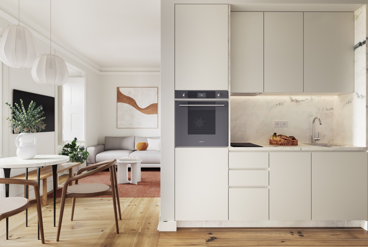 1 Bedroom duplex apartment, new, with 103 sqm (gross floor area) and a balcony, at the Rocio Salema Courtyard project, in Praça do Rossio, Lisbon. The Rocio – Salema Courtyard, a building comprising 36 studio, 1-bedroom, 1-bedroom duplex and 2-bedroom duplex apartments, is located next to one of the most iconic squares in Lisbon, Praça do Rossio.This corner of Lisbon that marvels people from all over the world represents in a perfect manner the intersection between heritage and modernity, which results in a picturesque and welcoming space in the centre of the hustle and bustle of the city. Despite being a rehabilitated building, the Rocio – Salema Courtyard has kept its typical Lisbon structure and the original three storeys, overlooking the river. The Rocio is the ideal address for those wanting to live or invest in one of the most vibrant cities due to the constant tourism growth. The development is near important monuments of the metropolis, such as the statue of D. Pedro IV, the Teatro D. Maria II and the Coliseu dos Recreios. Next to Praça do Rossio, the building has a privileged location in terms of transport, at a short distance from the underground, bus and the Rossio train station. This is the perfect opportunity for those wanting to be where the action is while having a luxurious haven to call home.