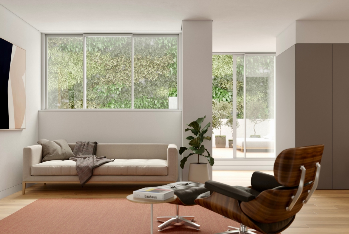 New 2+1 bedroom apartment, with 116 sqm (gross floor area) and parking, at Infante Residences, in Lisbon.The Infante Residences, a condominium that comprises forty-five 1, 2, 2+1 and 3-bedroom apartments with areas ranging from 47 sqm to 131 sqm, is located on Avenida Infante Santo, one of the most prestigious avenues in Lisbon.This development, a close neighbour of the River Tagus, results from the authentic Lisbon motion, offering all the benefits of living in Lisbon with the advantage of having parking. The Infante Residences also offers the best of the two worlds to all residents, a terrace in the ground floor apartments and a communal rooftop with a dazzling view over the river, a swimming pool and a service area where you can make a toast to life in Lisbon. Located next to the greenest areas of Lisbon, such as Jardim da Estrela, Tapada das Necessidades, Parque Eduardo VII and Parque Florestal de Monsanto, the Infante Residences offers the possibility of living near everything that Lisbon has to offer. This is a development that adapts to Lisbon’s tradition and it is at the distance of a tram, bus, and soon an underground trip from all the major points of the capital. Near Amoreiras Shopping Center, El Corte Inglés and Time Out Market. This project is for all true “Alfacinhas” who wish to experience the city as tradition dictates: between the Tagus and its hills.