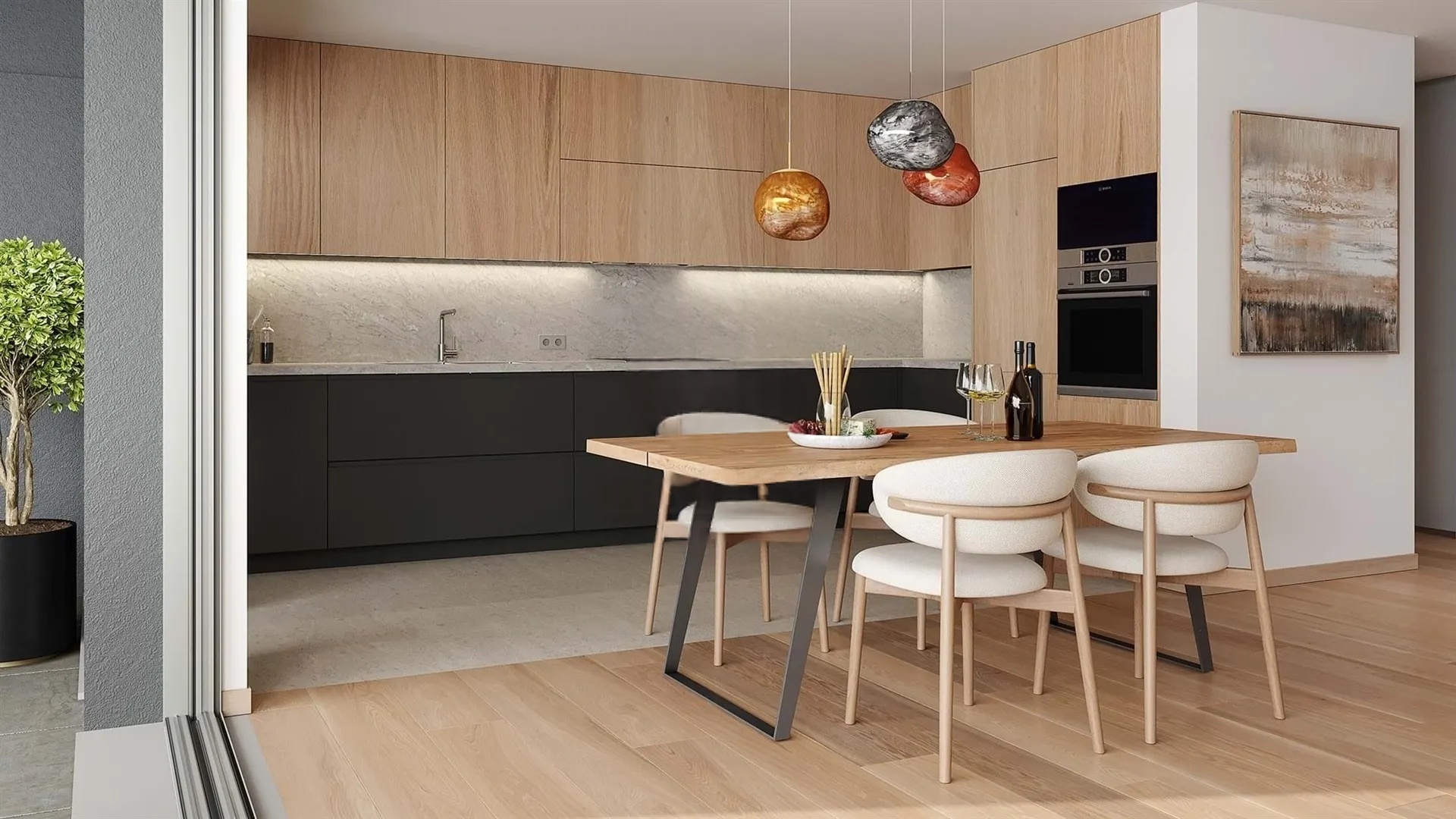 This development will be built with high quality standards, beautiful garden with local plants, swimming pool, each flat will have a garage place.