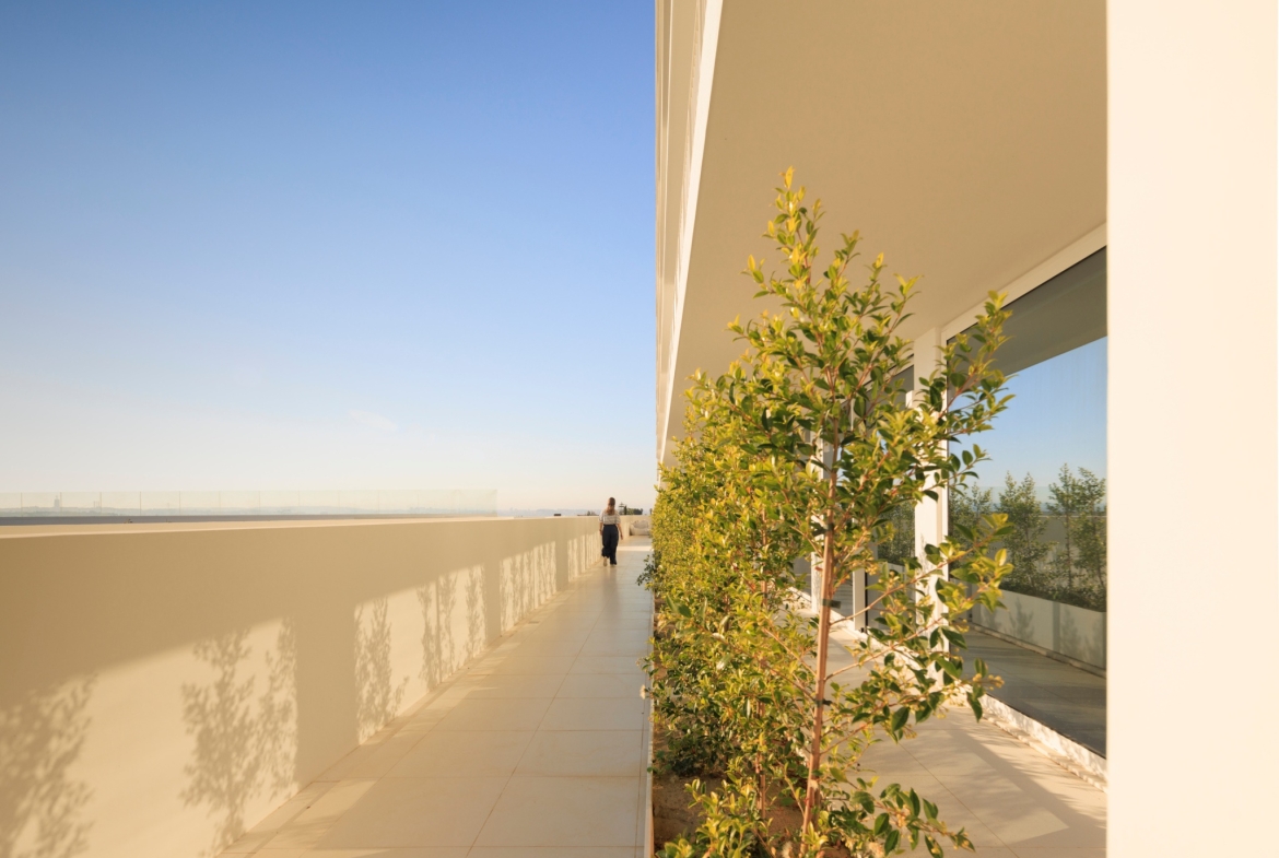 3 bedroom apartment with 128 sqm, brand new, with 2 parking spaces and 3 balconies with 12, 5 and 1sqm, in the Colina do Outeiro, a modern and elegant gated community marked by a resort atmosphere and by the contemporary architecture featuring large areas and plenty of natural light, designed by the renowned architecture studio S+A, in Seixal. In this new gated community, it will also be possible to enjoy other amenities, such as parking spaces for cars and bikes, storage room, gym, children’s playground, playing field, gardens and communal swimming pool. With a riverfront of 14 km, the Colina do Outeiro is the perfect choice for those looking for a quiet life, with all the safety, comfort, quality in close contact with nature and just a few minutes from Lisbon.