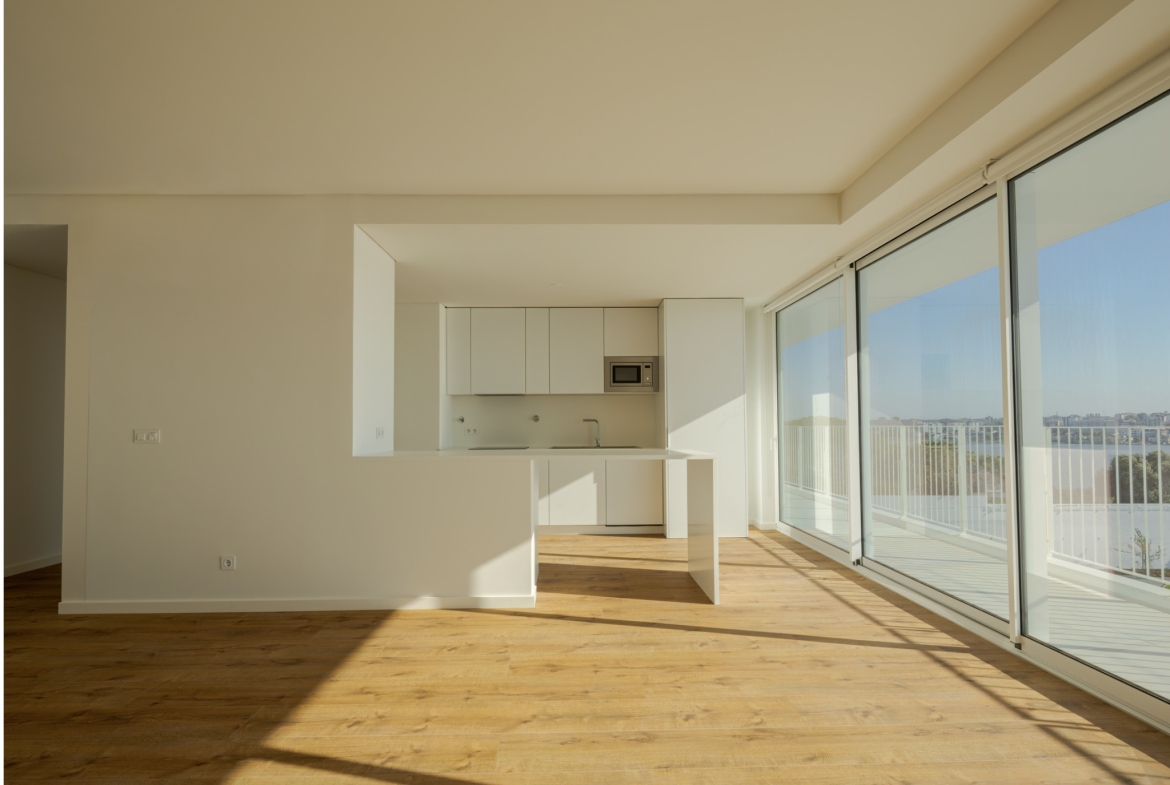3 bedroom apartment with 128 sqm, brand new, with 2 parking spaces and 3 balconies with 30, 5, 1 sqm, in the Colina do Outeiro, a modern and elegant gated community marked by a resort atmosphere and by the contemporary architecture featuring large areas and plenty of natural light, designed by the renowned architecture studio S+A, in Seixal. In this new gated community, it will also be possible to enjoy other amenities, such as parking spaces for cars and bikes, storage room, gym, children’s playground, playing field, gardens and communal swimming pool. With a riverfront of 14 km, the Colina do Outeiro is the perfect choice for those looking for a quiet life, with all the safety, comfort, quality in close contact with nature and just a few minutes from Lisbon.