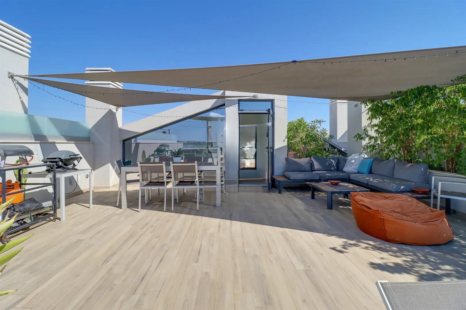 At the top, a panoramic rooftop terrace with a private jacuzzi invites you to enjoy unique moments of relaxation while taking in the stunning sunsets.