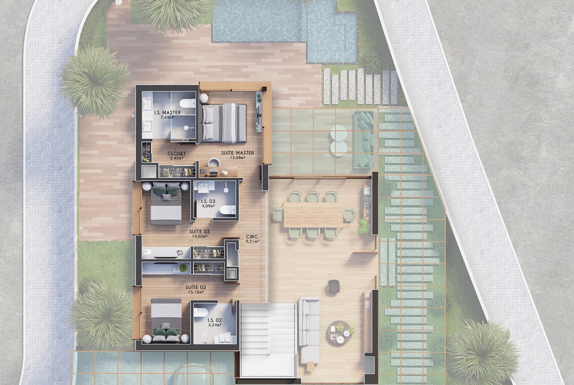 4-bedroom villa, 223.78 sqm (gross construction area), with garden and swimming pool, set in a 553.1 sqm plot of land, in the Estoril Woods gated community, in Estoril. Villa spread over two floors. The ground floor comprises the social area, living and dining room with double height ceiling, with glazed spans and access to the outdoor area; gourmet and dining area next to the swimming pool and changing rooms; A fully equipped kitchen with pantry and separate laundry room; a guest bathroom and a suite. The first floor comprises three suites. The finishes and materials used both outside and in the interiors are of excellent quality.The Estoril Woods is a development located in Estoril, in a residential and quiet area of Livramento, an innovative concept with a project featuring contemporary lines by the Architect Sidney Quintela studio. Each house was designed with all the amenities, in a space created to promote the coexistence of the family and friend gatherings, in a green and peaceful environment. A gated community, set in a 10,000 sqm plot with 12 detached villas with their own garden and swimming pool. The gated community has a club with Gym and Spa and a children’s playground. In terms of security and privacy, the gated community is fenced, has controlled access and 24-hour security service. The villas’ predominant feature is the feeling of space and light, which the wide spans and high ceilings give to the interiors. Surrounded by vegetation and preserving the old trees that already existed, large glazed spans open over a green and restful landscape that invite the outside in.Work completion scheduled for: December 202410-minute driving distance from Escola Salesiana do Estoril, from German School (Deutsche Schule Lissabon) and SAIS (Santo António International School), 15 minutes from Colégio Amor de Deus, from the international schools TASIS (The American School in Portugal) and CAISL (Carlucci American International School of Lisbon), and from St. Julian’s School. 5-minute driving distance from Estoril Golf Club, CTE (Estoril Tennis Club), 10-minute driving distance from the Cascais Marina, Quinta da Marinha Golf Course, CUF Cascais, Cascais Hospital, and CascaiShopping. Estoril is 15 minutes from the centre of Sintra and 30 minutes from Lisbon Airport.