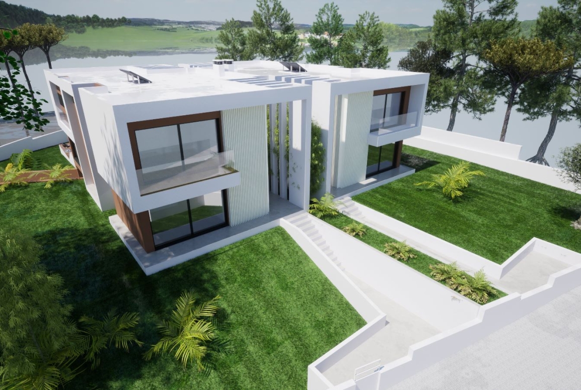Plot of land with approved project and paid license for a 4/5 bedroom villa, to be sold turnkey. It will have 394 sqm of gross construction area, 272 sqm above ground, and 122 sqm below ground, garden, and swimming pool, already with an A+ Energy Pre-Certificate. Located in the exclusive Soltroia Urbanization, the project includes a contemporary two-story house and a basement for parking 5 cars (78 sqm), with a storage room (14 sqm) and a complete bathroom (4.5 sqm). On the ground floor, there is a kitchen (19.5 sqm) with an opening to the living room (47.5 sqm) and direct access to the garden and pool, a bedroom (14 sqm), and a bathroom (4.5 sqm). On the upper floor, there are 3 suites (22 sqm, 24 sqm), one being a master suite (45 sqm) with a walk-in closet and a river view, with the possibility of having an additional bedroom by eliminating the closet. All finishes are modern, such as central vacuum, hydraulic underfloor heating, solar panels, electric shutters, air conditioning with heat pump in all rooms, bathrooms with windows, kitchen with fully equipped island that opens directly to the living room and overlooks the garden and pool, home cinema, thermal and acoustic insulation in all rooms including bathrooms, video surveillance on both floors, two independent alarms, one for the house and another for the garage, with six surveillance cameras placed around the house, connected directly to the mobile phone. In the garden, the saltwater pool (35 sqm) features a waterfall illuminated by LEDs and traditional Portuguese pavement. The plot where it is located has three fronts facing north, east, and west.The Sado River beach is about 100m away, and the Atlantic Ocean is 950m away, as well as the ferry terminal at a straight distance of 160m. The region offers various activities for the whole family and can be reached by aqua taxi or ferryboat from the port of Setúbal, through two fluvial terminals, Doca do Comércio (ferries) and Cais 3 (catamarans), which provide the shortest connection to Troia and Lisbon’s Humberto Delgado Airport. A few kilometers away are Comporta and Carvalhal, and Alcácer do Sal is less than an hour away.