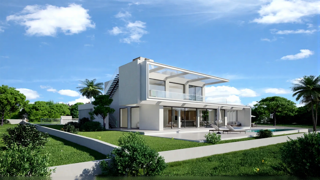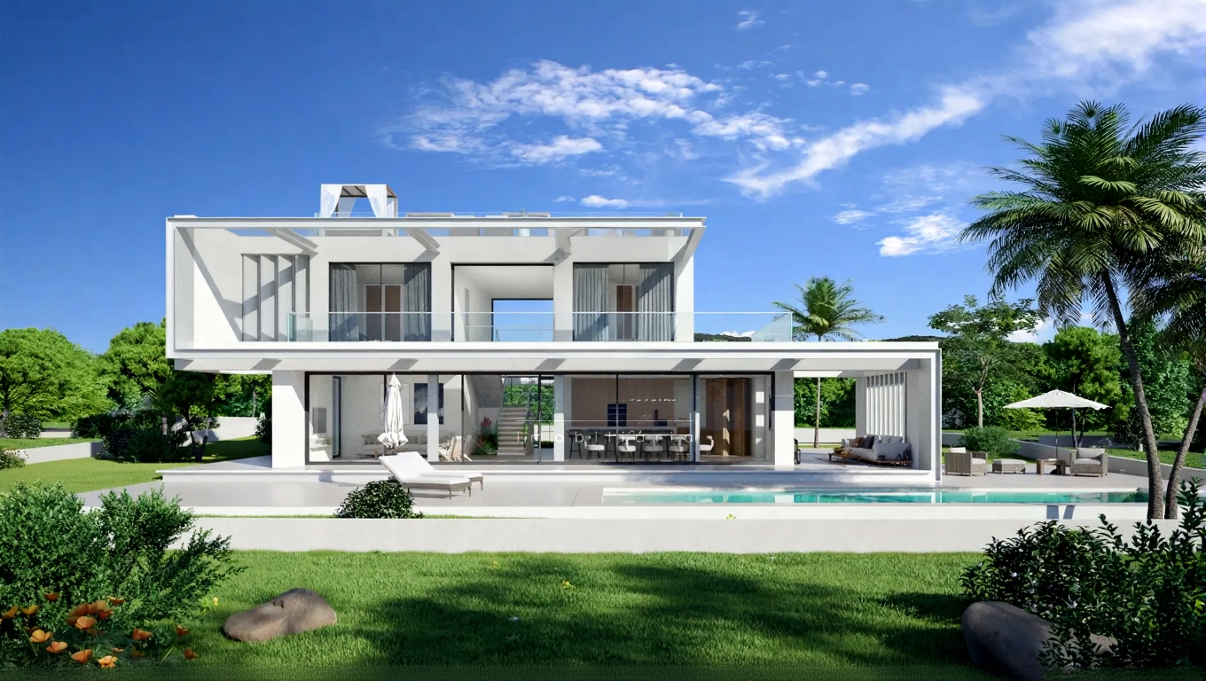 With a modern architectural design, this luxe property is built with high-quality materials and offers incomparable comfort with panoramic sea views. The two-storey house is complemented by a roof terrace offering breathtaking ocean views.