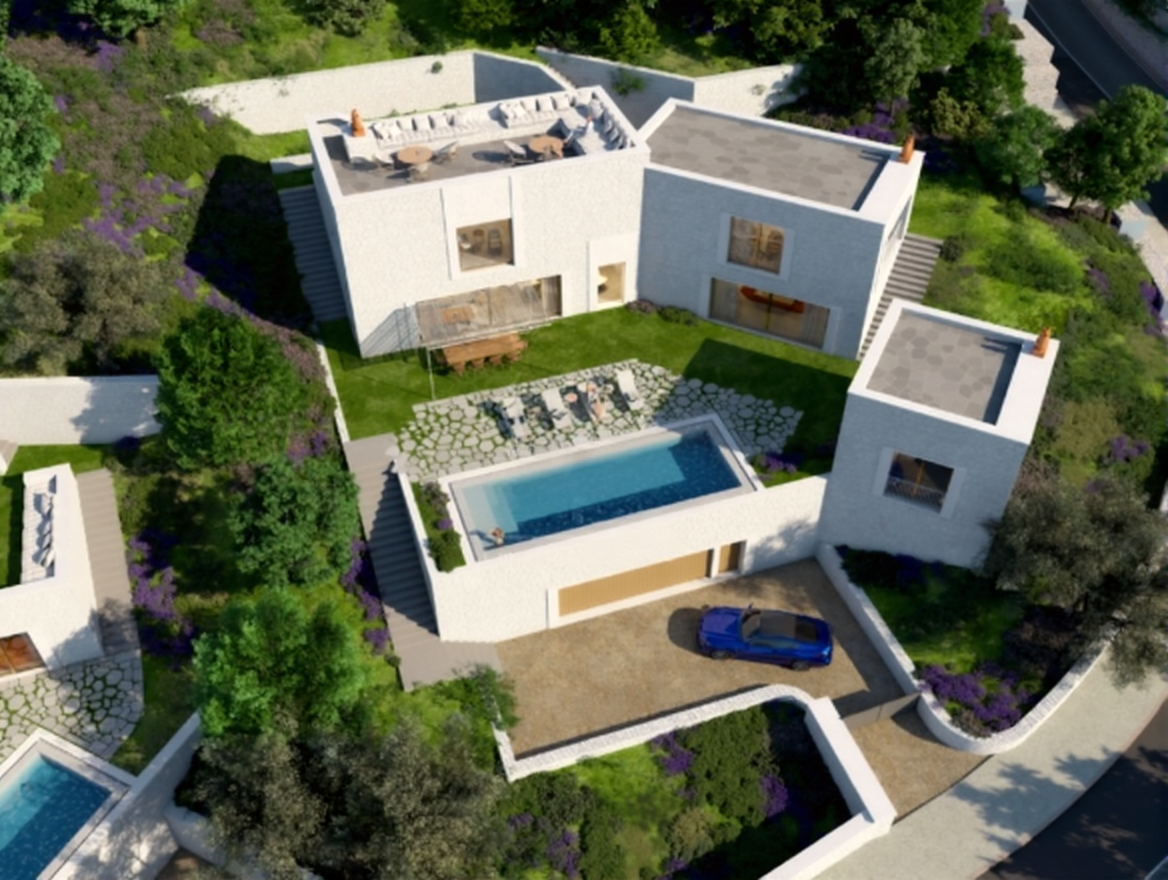 New, detached villa, turnkey project, with 679m2 of gross area, garden, swimming pool and garage for several cars with electric charging points, inserted in the ”Alcedo Villas at Ombria” complex of villas.