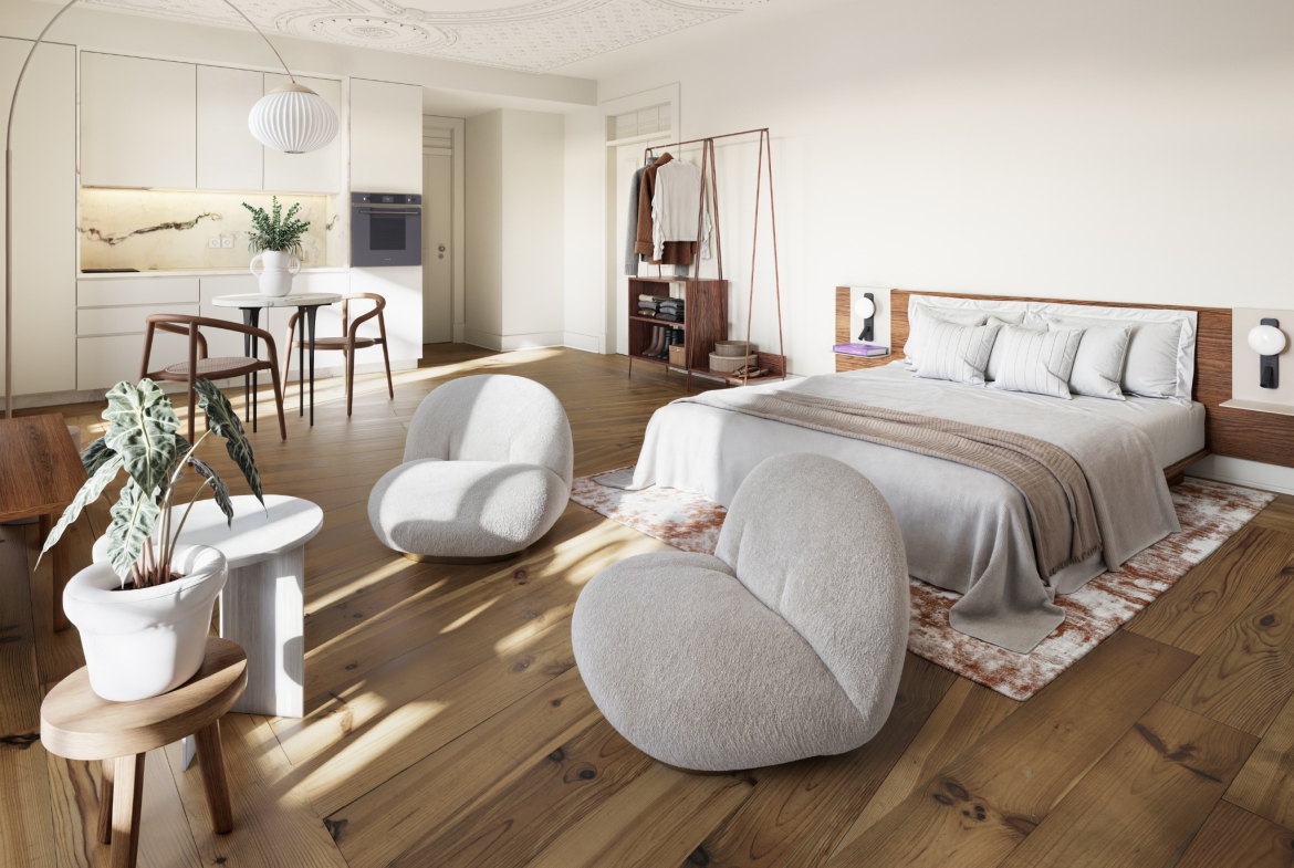 Studio apartment, new, with 50 sqm (gross floor area), at the Rocio Salema Courtyard project, in Praça do Rossio, Lisbon. The Rocio – Salema Courtyard, a building comprising 36 studio, 1-bedroom, 1-bedroom duplex and 2-bedroom duplex apartments, is located next to one of the most iconic squares in Lisbon, Praça do Rossio.This corner of Lisbon that marvels people from all over the world represents in a perfect manner the intersection between heritage and modernity, which results in a picturesque and welcoming space in the centre of the hustle and bustle of the city. Despite being a rehabilitated building, the Rocio – Salema Courtyard has kept its typical Lisbon structure and the original three storeys, overlooking the river. The Rocio is the ideal address for those wanting to live or invest in one of the most vibrant cities due to the constant tourism growth. The development is near important monuments of the metropolis, such as the statue of D. Pedro IV, the Teatro D. Maria II and the Coliseu dos Recreios. Next to Praça do Rossio, the building has a privileged location in terms of transport, at a short distance from the underground, bus and the Rossio train station. This is the perfect opportunity for those wanting to be where the action is while having a luxurious haven to call home.